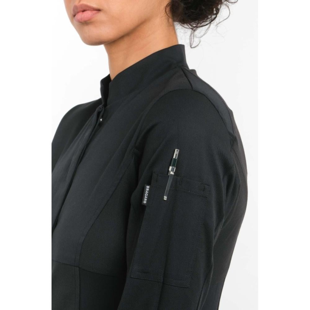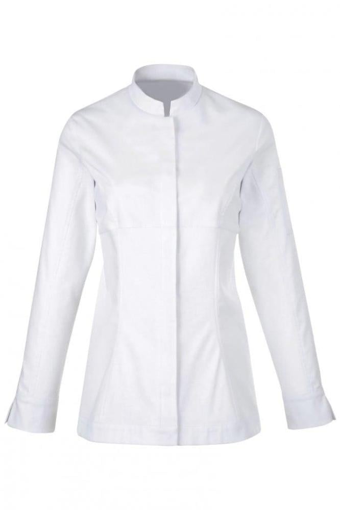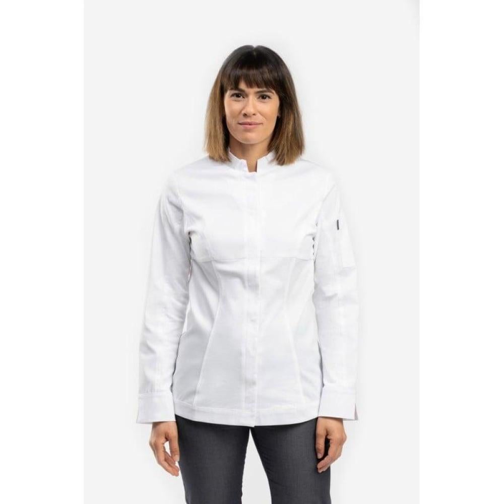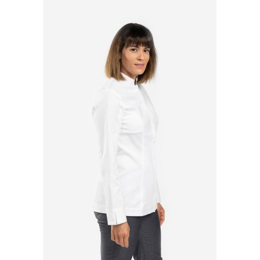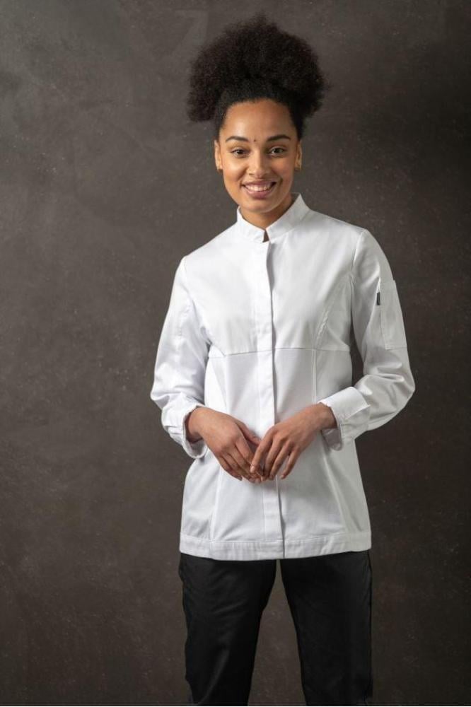 • Elegant slim fit chef jacket specially designed for women working in professional kitchen environments.